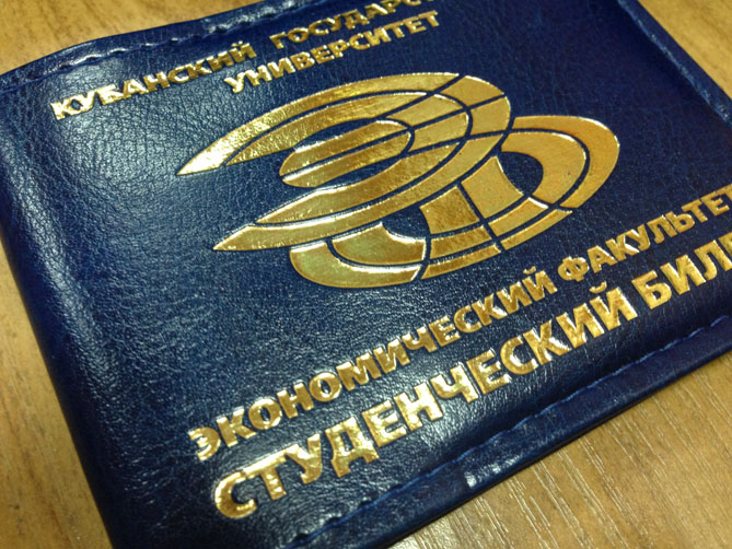 Обложки для студенческих билетов приобрели необходимость в Краснодаре, и в других городах России, в вузах, в Муниципальных организациях Наша компания предлагает изготовление обложек для студенческих билетов различных типов, видов. Изготавливаем из картона, кожзаменителя, кожи, бумвинила. Наносим любой логотип, герб, название учреждения, компании методом тиснения, шелкографии или при малых тиражах лазерной гравировкой с окрасом под золото либо серебро. Обложки для студенческих билетов в Краснодаре предлагает наша компания, по пошиву и тиснению обращаться по тел: (861) 25-111-55. На выбор много оттенков кожзамов, кож, рециклированной кожи.
