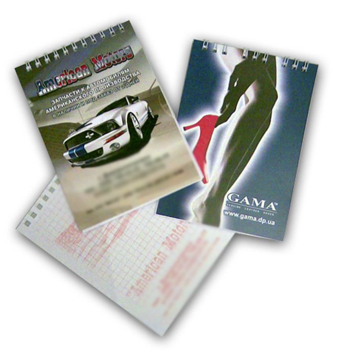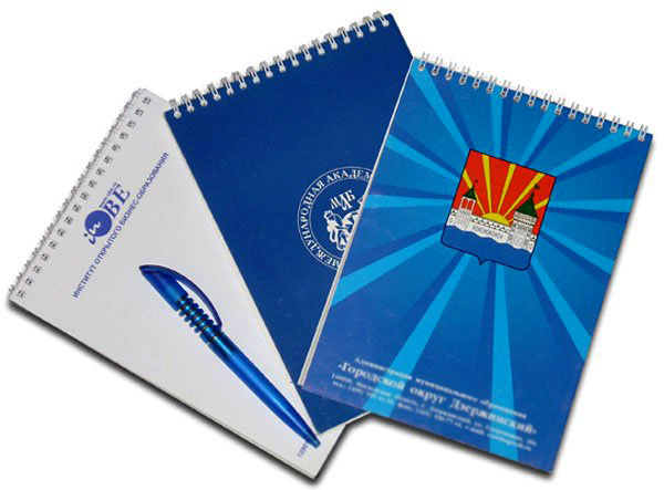Блокноты с логотипом на пружине в Краснодаре можно изготовить в нашем рекламном агентстве. Внутренние листы могут быть с логотипом, в клетку, или с любой информацией. Блокноты размерами: А4 (210х197), А 5 (210х105), А6 (105х148)