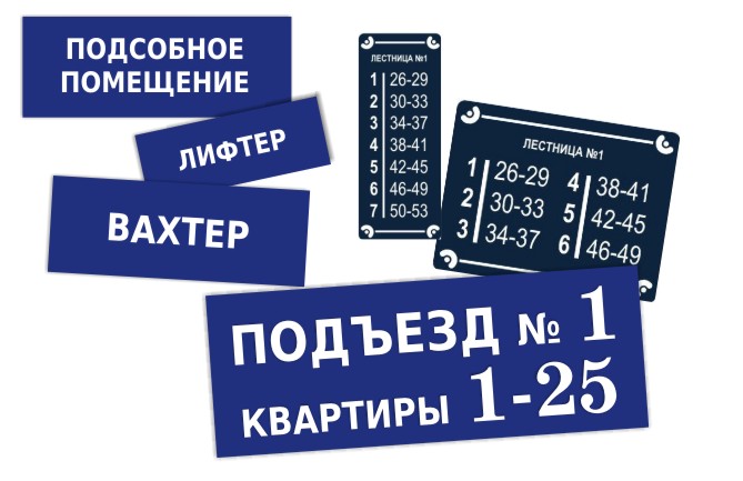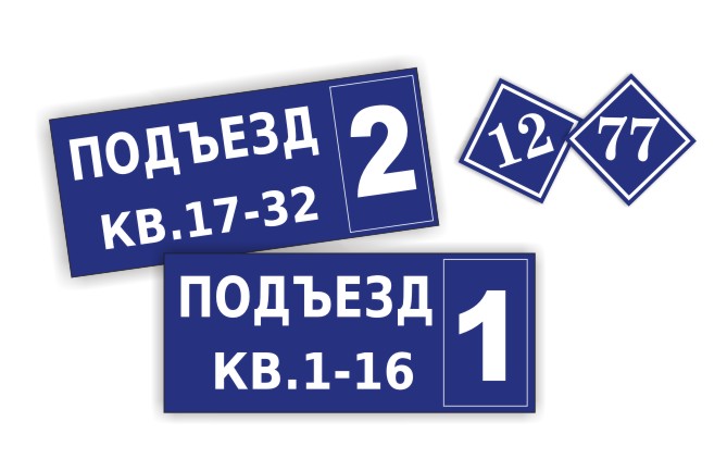 Таблички номера подъездов, номера квартир , указание этажей в Краснодаре предлагает рекламно-производственное агентство Знак. Таблички на подъезды для ЖКХ, ТСЖ, СНТ, домоуправления, информационные таблички не курить, не мусорить, ведется видеонаблюдение, и т.д. изготавливаем из металла, ламинируем (защита от погодных условий, от ультрафиолетовых лучей),
